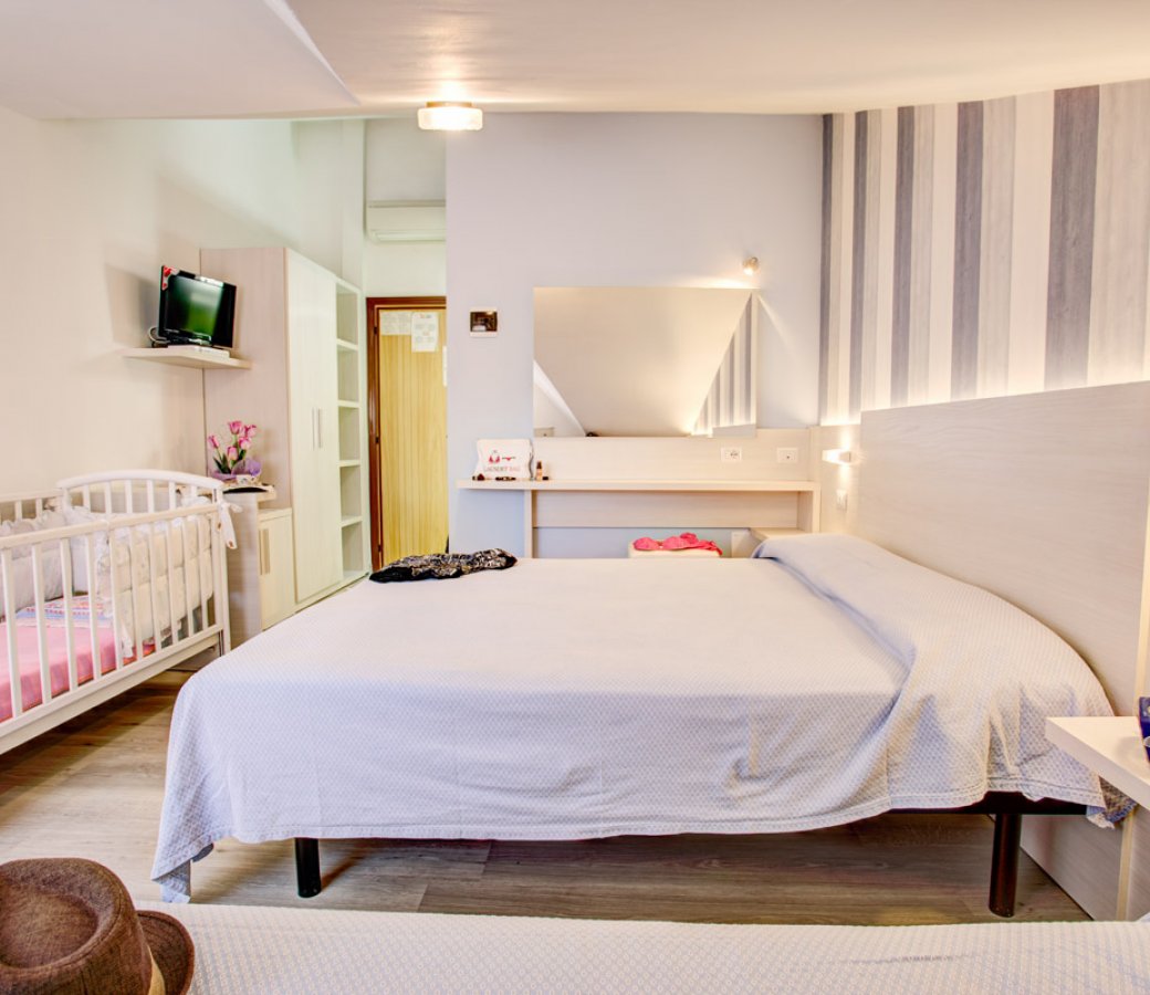 Sie wurden komplett renoviert und haben einen modernen, raffinierten Stil, weshalb sie sehr begehrt sind. Die Gäste dieser Zimmer können die große Gemeinschaftsterrasse mit Blick auf das Meer nutzen, die in Momenten der Entspannung als Solarium, aber auch für den Komfort genutzt werden kann. und praktische Bedürfnisse (Trocknen von Strandtüchern usw.).